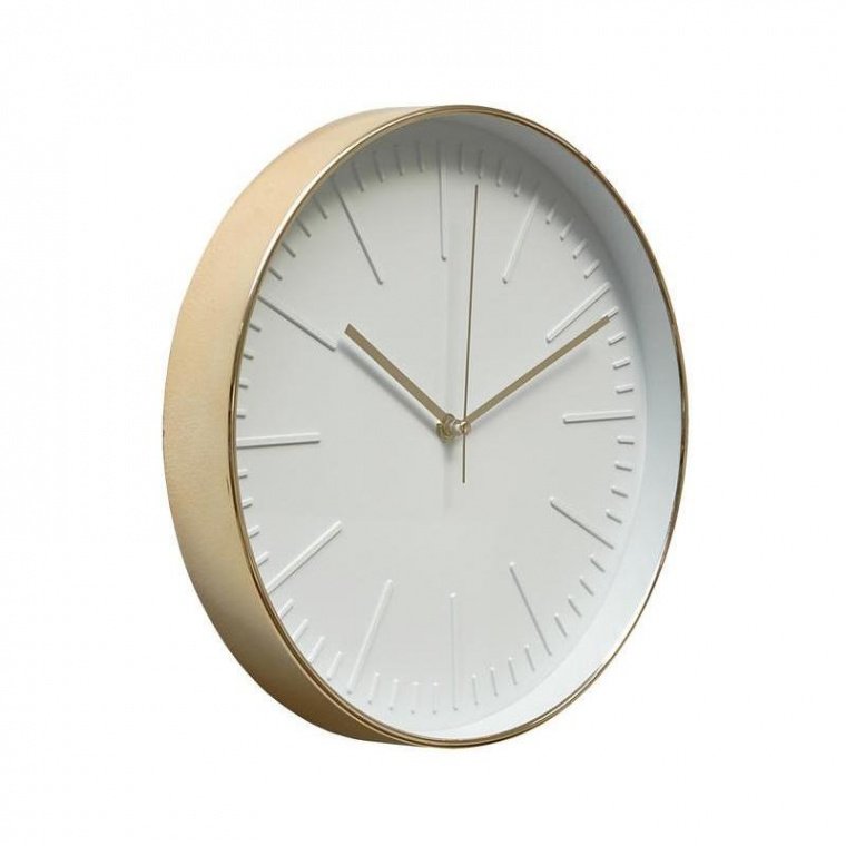 Часы настенные круглой формы Clock brass отлично дополнят любое помещение. Корпус изделия выполнен из пластика в золотистом цвете, циферблат — белый. Кварцевый механизм. Ход стрелки: плавный (бесшумный). Циферблат с делениями. Часы работают от 1 батарейки 1,5V АА (в комплект не входит). Размер изделия — 30,6×30,6×5 см.