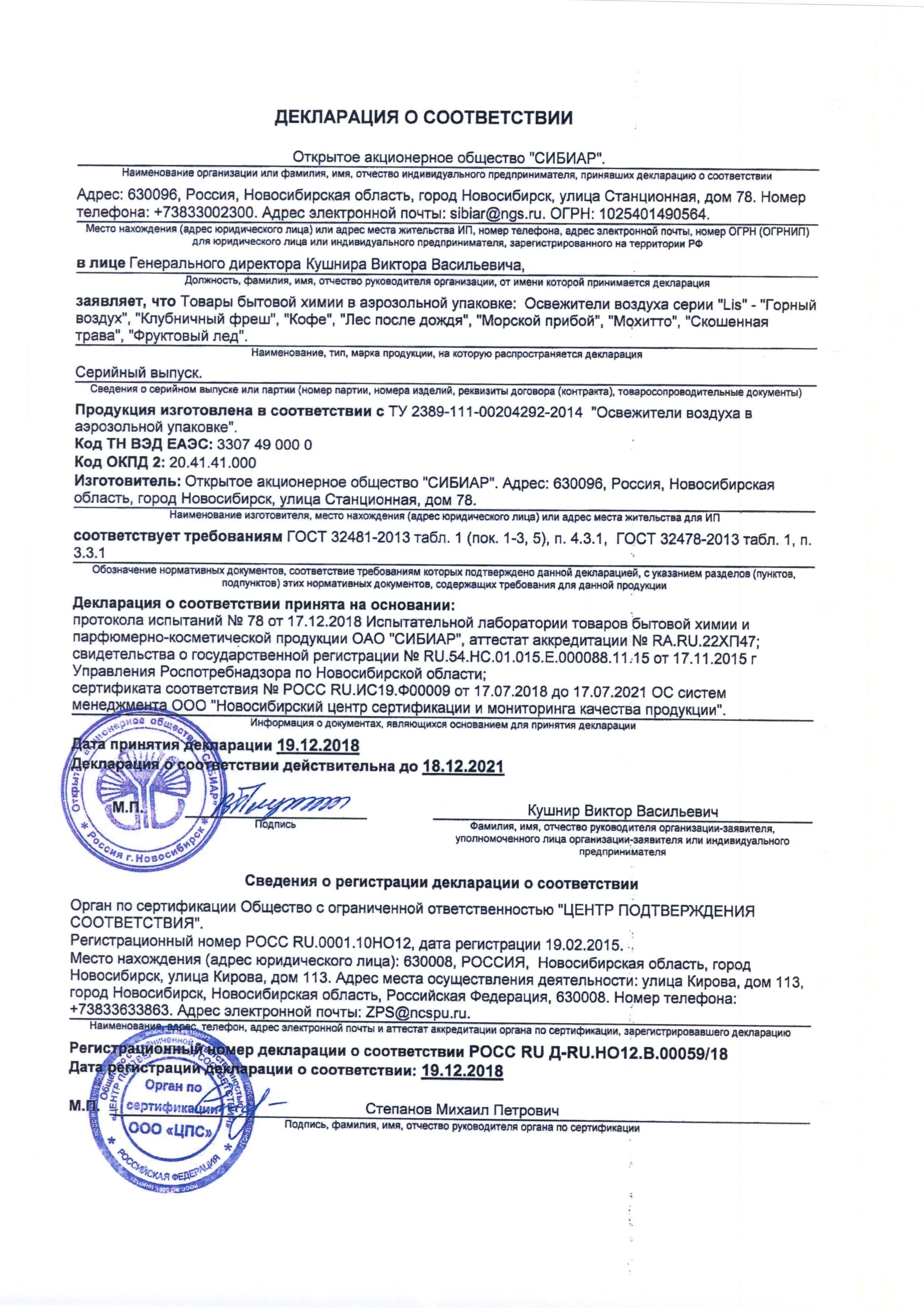 Состав: Вода, бутан/пропан/изобутан смесь 15-30%, отдушка <5%, сорбитан олеат <5%, метилизотиазолинон (и) хлорметилизотиазолинон <5%, триэтиленгликоль <5%, нитрит натрия <5%.