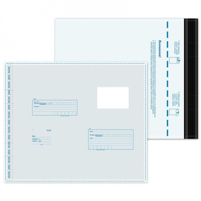 Почтовый пакет формата Е4 имеет размер 320×355 мм изготовлен из трехслойного непрозрачного полиэтилена толщиной 70 мкм. Оснащен почтовым подсказом «Куда-Кому» и отрывной клейкой лентой. Благодаря специальному прочному шву с микротекстом и специальным линиям просечек с защитным текстом на клапане предотвращает несанкционированное вскрытие. Имеет зону для наннесения шариковой ручкой надписей, оттисков штемпелей и не допускают их истирания при обработке и транспортировке. Многослойный полиэтилензащищает вложение от влаги и механических повреждений, непрозрачность исключает возможность определить содержимое. Предназначен для пересылки всех видов почтовых отправлений — писем, бандеролей и др. видов отправлений.