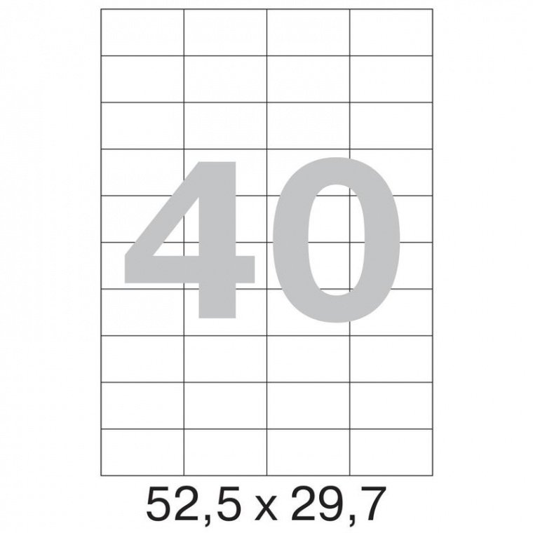 Данные для печати этикеток в ПО Word: Размер этикетки, см: 5,25×2,97; Кол-во этикеток на листе: 40; Верхнее поле, см: 0; Боковые поля, см: 0; Шаг по вертикали, см: 2,97; Шаг по горизонтали, см: 5,25; Высота наклейки, см: 2,97; Ширина наклейки, см: 5,25; Число наклеек по горизонтали: 4; Число наклеек по вертикали: 10.