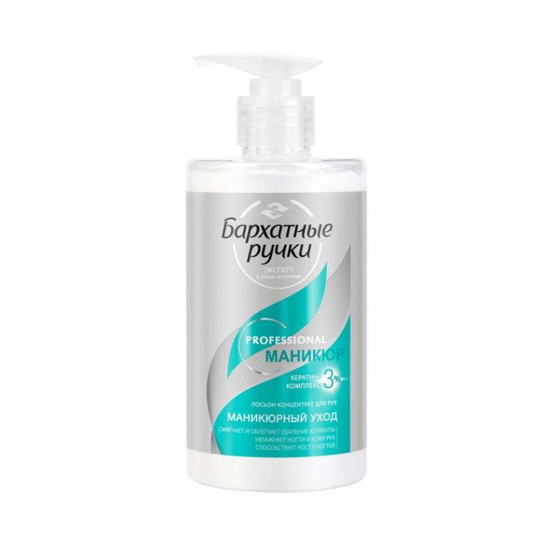 Крем-концентрат для рук Бархатные ручки Маникюрный уход 430 мл. Разработано и рекомендовано профессионалами. Эксперты в уходе за руками разаработали ухаживающий лосьон-концентрат, действие которого идеально подходит для салонной процедуры ухода за руками и ногтями. Он ухаживает за околоногтевой зоной, мгновенно смягчает кутикулу, помогая удалить ее. Формула быстро и полноценно увлажняет кожу рук и ногтевую пластину. Подходит для кожи, склонной к сухости и шелушению. Рекомендован обладателям ломких, склонных к расслоению ногтей. Эмульсионный лосьон, содержит натуральные масла (миндальное, авокадо), витамины Е, F и ухаживающие добавки: глицерин, аллантоин.Способ применения: наносите крем на чистую, сухую кожу легкими массирующими движениями. Состав/Ingredients: Aqua, Glycerinx, Paraffinum Liquidum, Hydrogenated Polyisobutene, Prunus Amygdalus Dulcis (Sweet Almond) Oilx, Persea Gratissima (Avocado) Oilx, Ethyl Linoleatex, Ethyl Linolenatex, Allantoinx, Tocopheryl Acetatex, Acrylates/C10-30 Alkyl Acrylate Crosspolymer, Caprylyl Glycol, Dimethicone, Disodium EDTA, Ethylparaben, Glyceryl Citrate/Lactate/Linoleate/Oleate, Methylparaben, Parfum, PEG-40 Hydrogenated Castor Oil, Phenoxyethanol, Polyglyceryl-3 Diisostearate, Triethanolamine, Benzyl Salicylate, Coumarin, Hexyl Cinnamal, Hydroxycitronellal, Limonene.