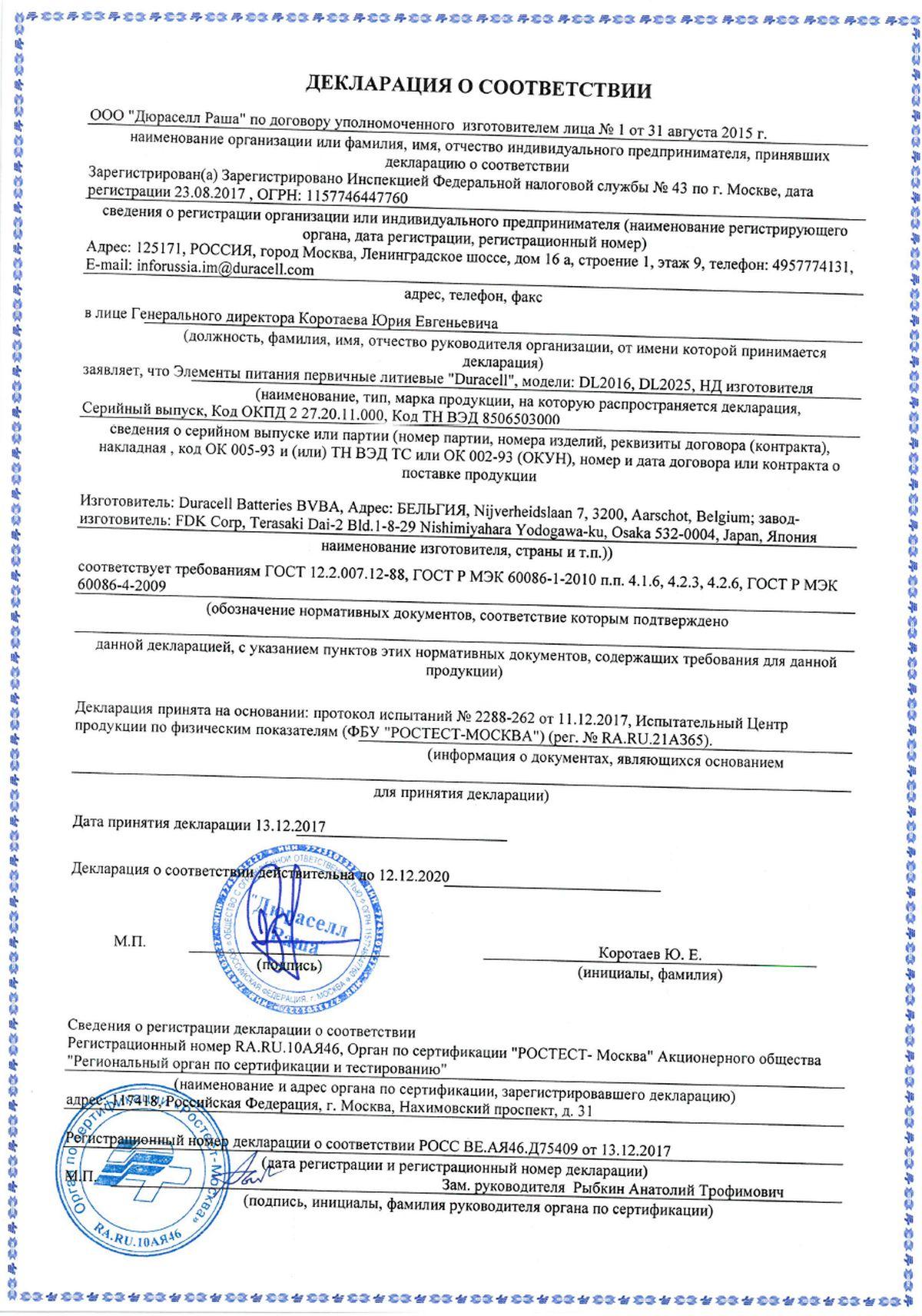 • Технология Duralock Power Preserve™ гарантирует до 10 лет сохранения заряда неиспользованных батареек