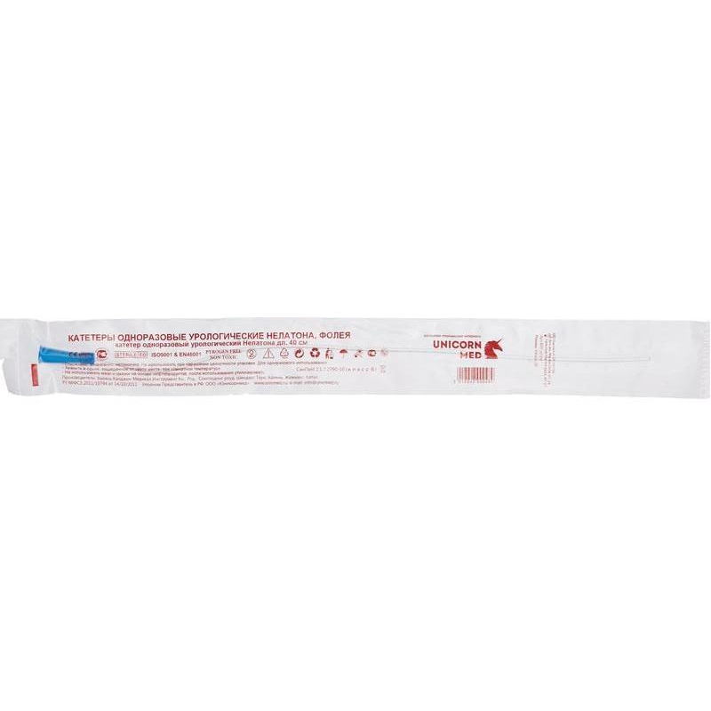 Катетер урологический Нелатона Unicornmed мужской СН/FR 8 40 см. Катетер предназначен для промывания и кратковременной катетеризации мочевого пузыря у мужчин. Зонд имеет гладкую поверхность и атравматичный закрытый конец с двумя латеральными отверстиями на противоположных сторонах, обеспечивающими эффективный дренаж. Дистальный конец катетера закруглен для обеспечения безболезненной постановки. Термопластичный материал размягчается при температуре тела, облегчая введение и устраняя необходимость использовать смазку. Изготовлен из прозрачного имплантационно-нетоксичного поливинилхлорида. Длина катетера 40+2 см. Внутренний диаметр 1,7 мм, внешний диаметр 2,7. Цветомаркированный коннектор позволяет определить размер катетера по шкале Шарьера. Зонд упакован в герметичный пакет, который снабжен насечкой, обеспечивающей быстрое вскрытие без использования ножниц. Стерилизован оксидом этилена.
