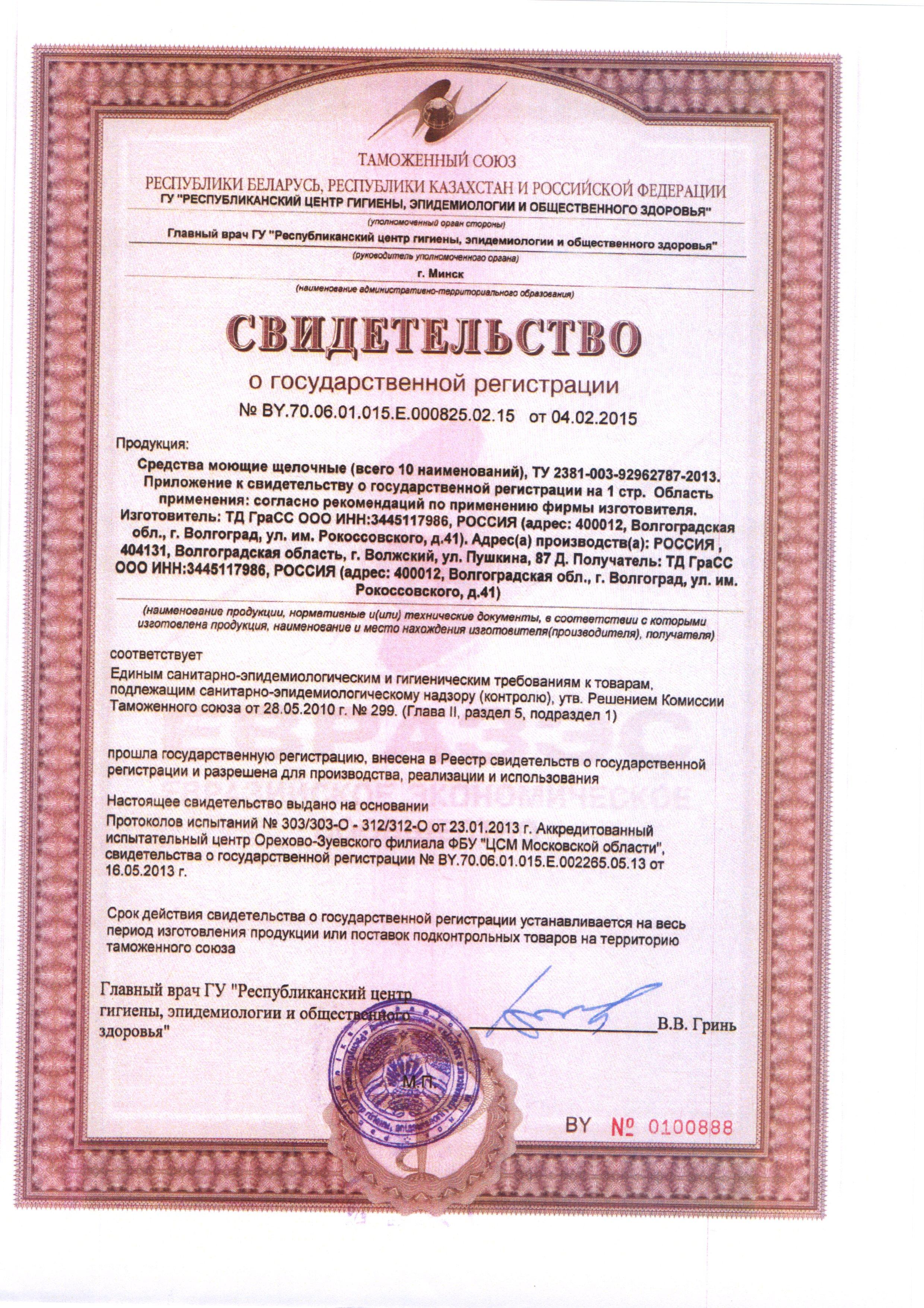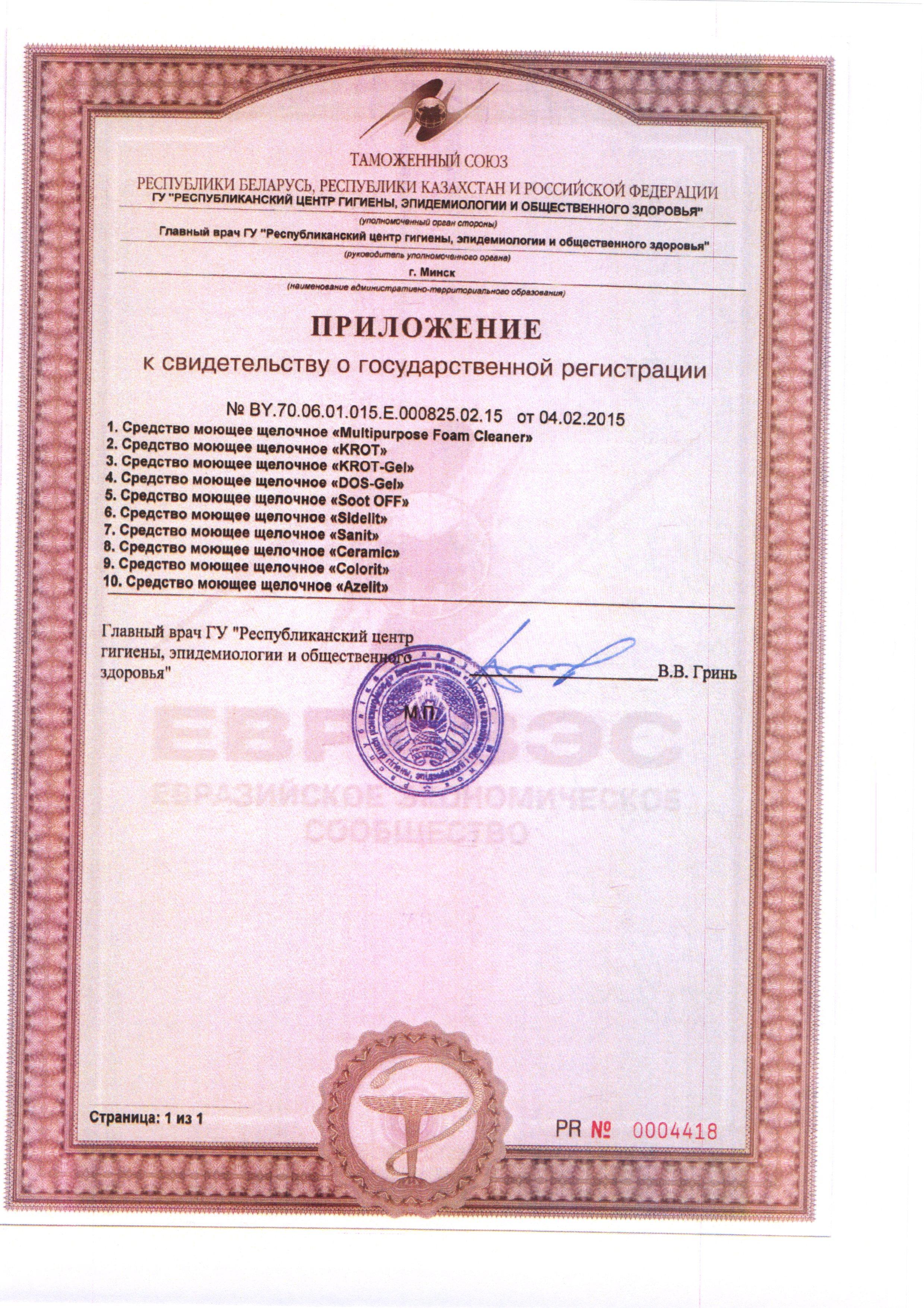 Сертификат на товар - Средство для чистки плит Grass Azelit Анти-жир 600 мл