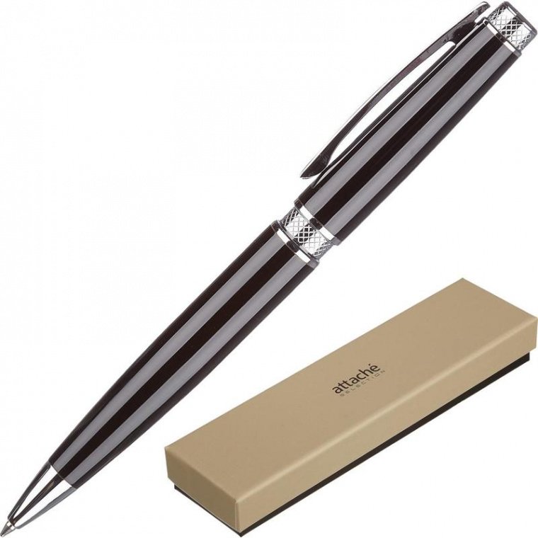 Шариковая ручка Attache Selection Desire с поворотным механизмом выполнена из латуни. Корпус имеет глянцевое покрытие черного цвета. Ручка поставляется в престижной подарочной коробке. Толщина линии письма 0,7 мм. Цвет чернил — синий.