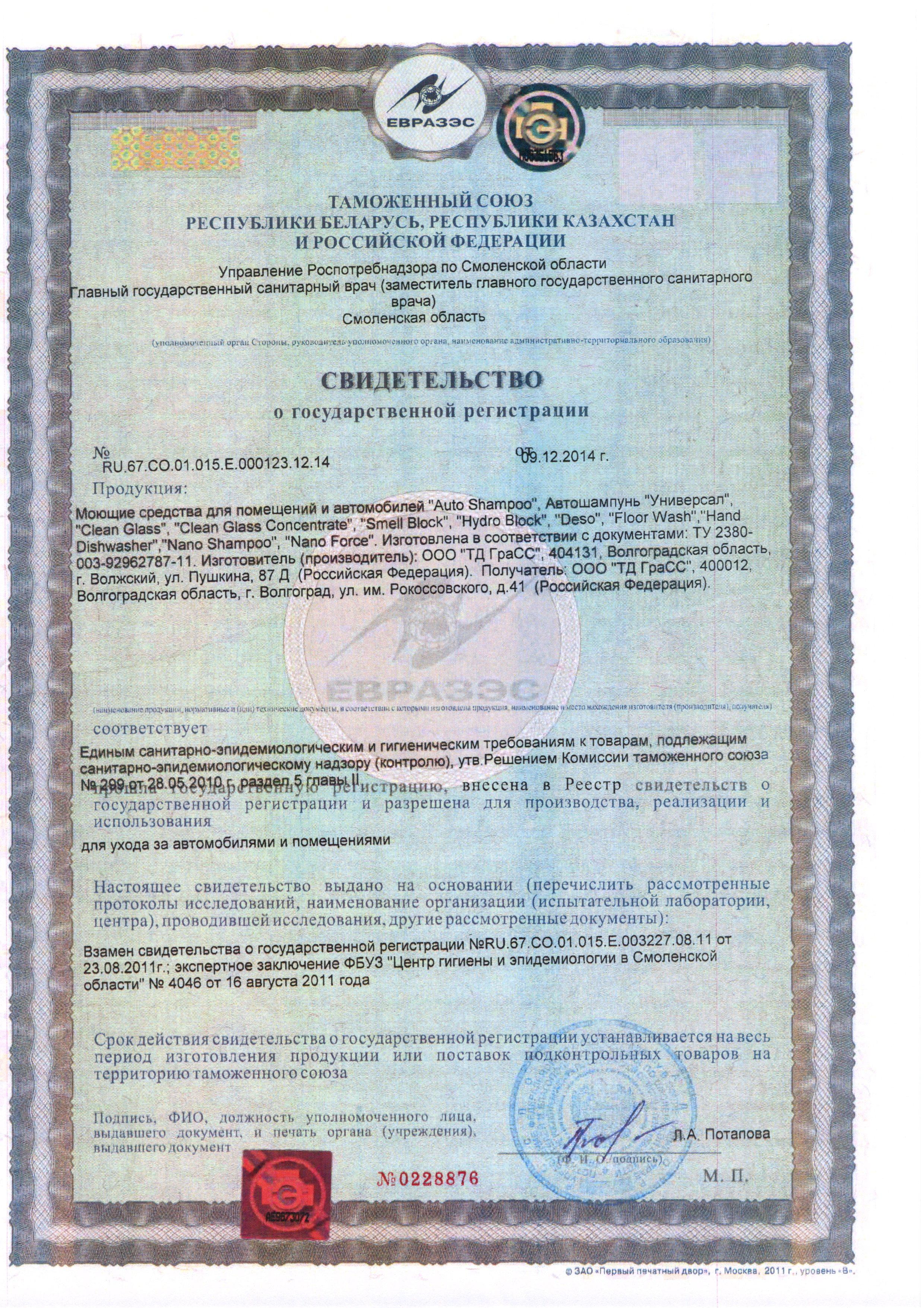 Сертификат на товар - Чистящее средство с дезинфицирующим эффектом Grass Deso С10 1 кг (концентрат)