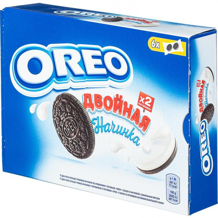 Печенье сдобное Oreo с какао и начинкой с ванильным вкусом — это самое популярное в США печенье, которое состоит из двух шоколадных половинок, соединенных кремовой сладкой начинкой.