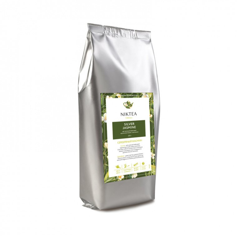 Niktea «Серебряный жасмин» фасуется в герметичную фольгированную упаковку, которая надежно защищает чай от проникновения света, влаги и посторонних запахов, сохраняя его чистый аромат и свежий, благородный вкус. Информативная этикетка с подробным описанием характеристик чая, его состава, а также способа заваривания поможет готовить его всегда правильно.