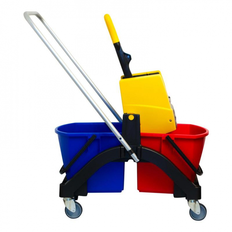 В комплект входит пластиковая база, 2 ведра по 17 л (синее и красное или антрацит), отжим VK4 (желтый), с перекидной ручкой. Благодаря большим поворотным роликам, тележкой Vermop Aqua очень легко маневрировать.