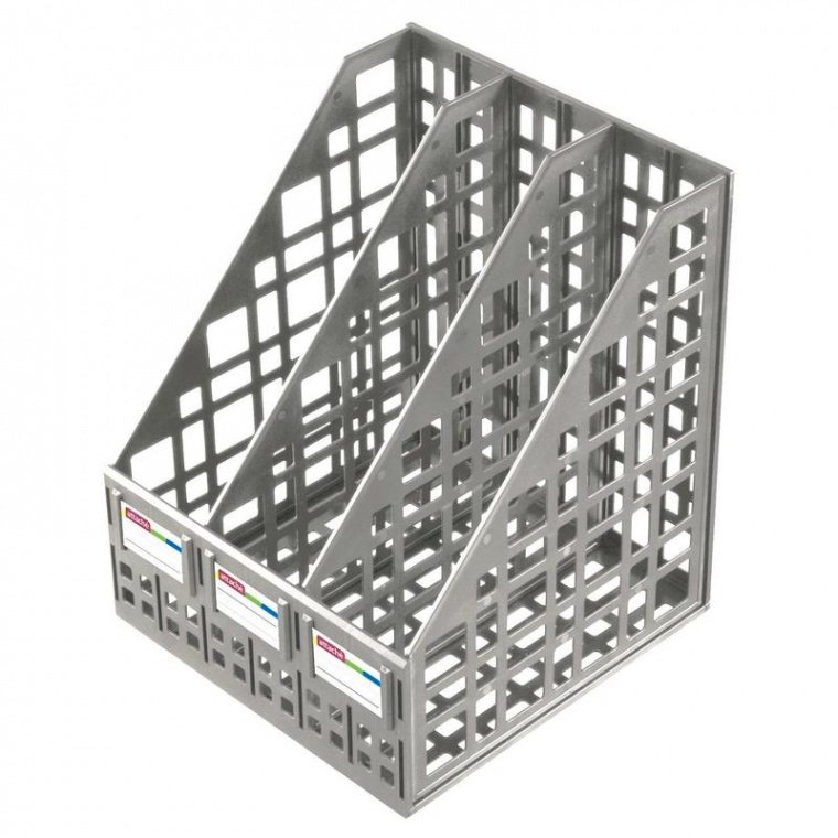 Вертикальный накопитель Attache вертикальный, имеет 3 отделения. Легкий и прочный, даже при максимальной нагрузке документов. Удобен при транспортировке и хранении. Упакованы в термопленку с цветным вкладышем. Имеет сборно-разборную конструкцию. Сетчатая поверхность. Цвет: серый. Ширина основания 240 мм. Размер изделия в собранном виде (ДxШxВ) — 250×245×295 мм. Размер изделия в разобранном виде (ДxШxВ) — 250×240×295 мм.