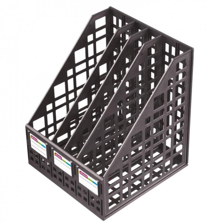 Вертикальный накопитель Attache вертикальный, имеет 4 отделения. Легкий и прочный, даже при максимальной нагрузке документов. Удобен при транспортировке и хранении. Упакованы в термопленку с цветным вкладышем. Имеет сборно-разборную конструкцию. Сетчатая поверхность. Цвет: черный. Ширина основания 240 мм. Размер изделия в собранном виде (ДxШxВ) — 250×245×295 мм. Размер изделия в разобранном виде (ДxШxВ) — 250×240×295 мм.