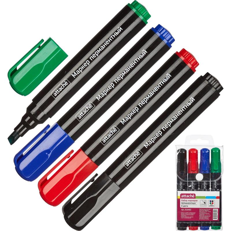 Набор маркеров перманентных Attache 4 цвета (толщина линии 1,5-3 мм)