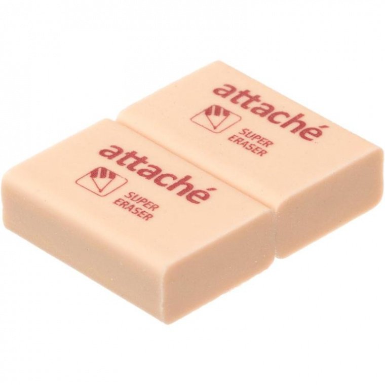 Ластик Attache изготовлен из термопластичного каучука и предназначен для удаления с бумаги надписей, сделанных чернографитными карандашами. Мягко и быстро удаляет написанное, не повреждая поверхность. Поставляется в упаковке по 2 шт. Размер: 31×21×12 мм