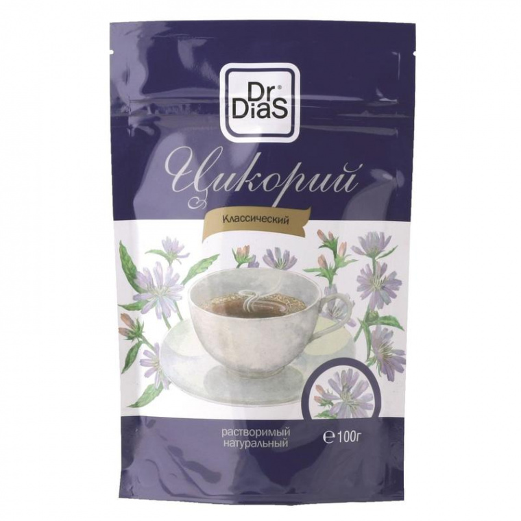 Цикорий Dr. DiaS порошкообразный «Классический». По сравнению с кофе цикорий не содержит кофеина и не оказывает возбуждающего действия на нервную систему и систему кровообращения, поэтому цикорий безопасен для лиц, страдающих гипертонической болезнью, бессонницей, сердечно-сосудистыми и другими заболеваниями. Цикорий полезен при воспалительных заболеваниях слизистой оболочки желудка, тонкого и толстого кишечника, болезнях печени, желчного пузыря, почек. Физиологическая ценность корней цикория обусловлена богатым сочетанием различных фармакологически активных соединений, таких, как полисахарид инулин, витамины, органические кислоты, микроэлементы, белки, пектины и другие вещества, полезные для организма человека.