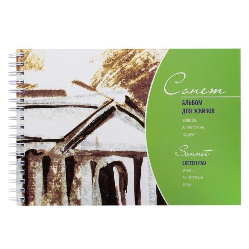 Альбом для рисования Сонет А5 30 листов применяется для рисования, создания эскизов и зарисовок. Используется при работе с мягкими материалами (пастель, соус, сангина, уголь, ретушь, карандаш), тушью, акварелью. Формат листов: А5. Количество листов: 30 штук. Страна производства: Китай.