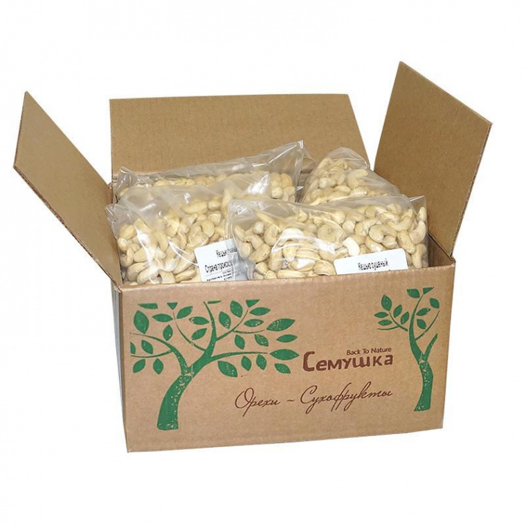 Плод кешью или «яблоко кешью» — на самом деле разросшаяся сочная плодоножка. Жёлтые или красные, 5–11 см длиной, они имеют грушевидную или ромбовидно-продолговатую форму. Истинный кешью развивается на самом конце плодоножки. Наряду с белками, жирами и углеводами содержит никотиновую и жирные кислоты, витамины групп E, B и A, клетчатку, железо, калий, цинк, фосфор, марганец, селен, антиоксиданты (фенольные соединения и фитостеролы). Такой набор компонентов делает орехи кешью чрезвычайно полезными. Сушеные кешью «Семушка» можно использовать для перекусов, класть в салаты и десерты.