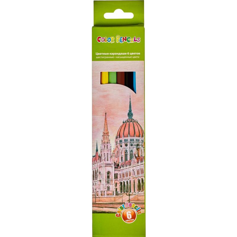 Карандаши цветные 6 цветов шестигранные (пластиковый корпус)