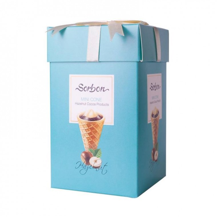 Конфеты Sorbon Hazelnut мини-рожки с какао хрустящей начинкой — это вкусное лакомство в хрустящем вафельном стаканчике с начинкой из шоколада и фундука.