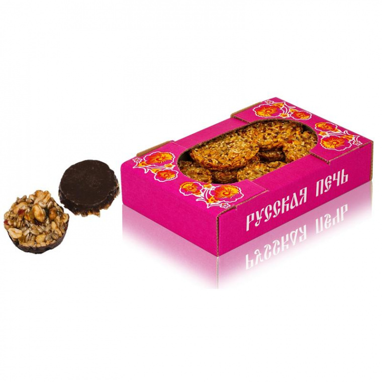 Печенье орехово-зерновое «Русская печь. Демидовское»- это оригинальное грильяжное печенье по уникальной технологии из семян подсолнечника, с арахисом и цукатами. Необычный вкус рассыпчатого печенья привлечет истинных гурманов и ценителей здорового образа жизни, так как карамельная основа, скрепляющая орехи и цукаты, готовится на основе меда.