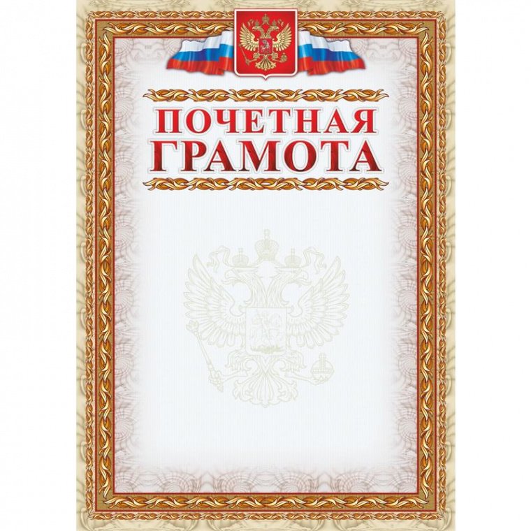 Грамота почетная с гербом и флагом отпечатана на мелованной бумаге. Почетная грамота — это документ (как правило красиво оформленный), который в будущем может служить доказательством успехов и достижений. В одной упаковке 15 грамот. Плотность — 250 г/кв.м. Формат А4.