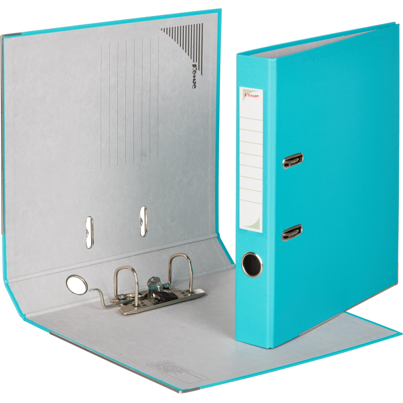 Папка-регистратор с арочным механизмом Комус подходит для хранения документов в большом количестве, формата А4. Изготовлена из плотного картона, который покрыт пластиком (бумвинилом) бирюзового цвета. Арочный механизм произведен в Чехии. Нижние края защищены от повреждений металлическим кантом. На корешке шириной 50 мм имеется карман со сменной этикеткой и кольцо для захвата. Папка-регистратор вмещает до 350 листов стандартной плотности. Размер кармана на корешке папки может быть разным, в зависимости от производителя папок. Цвет папки может быть насыщенным, либо более светлым в зависимости от производителя папок.