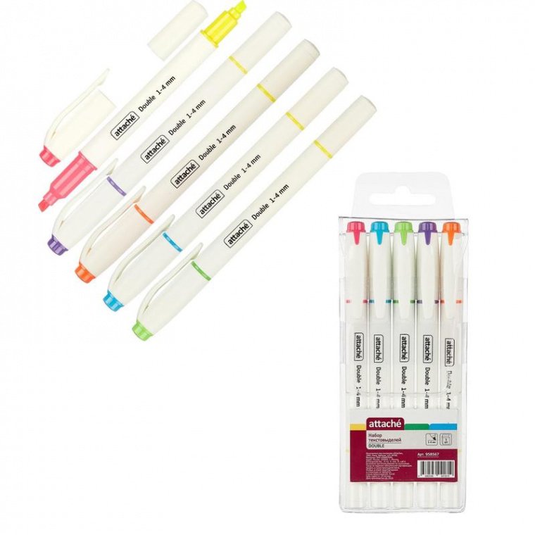Набор текстовыделителей Attache Double (толщина линии 1-4, 6 цветов: желтый, фиолетовый, зеленый, оранжевый, голубой, розовый)