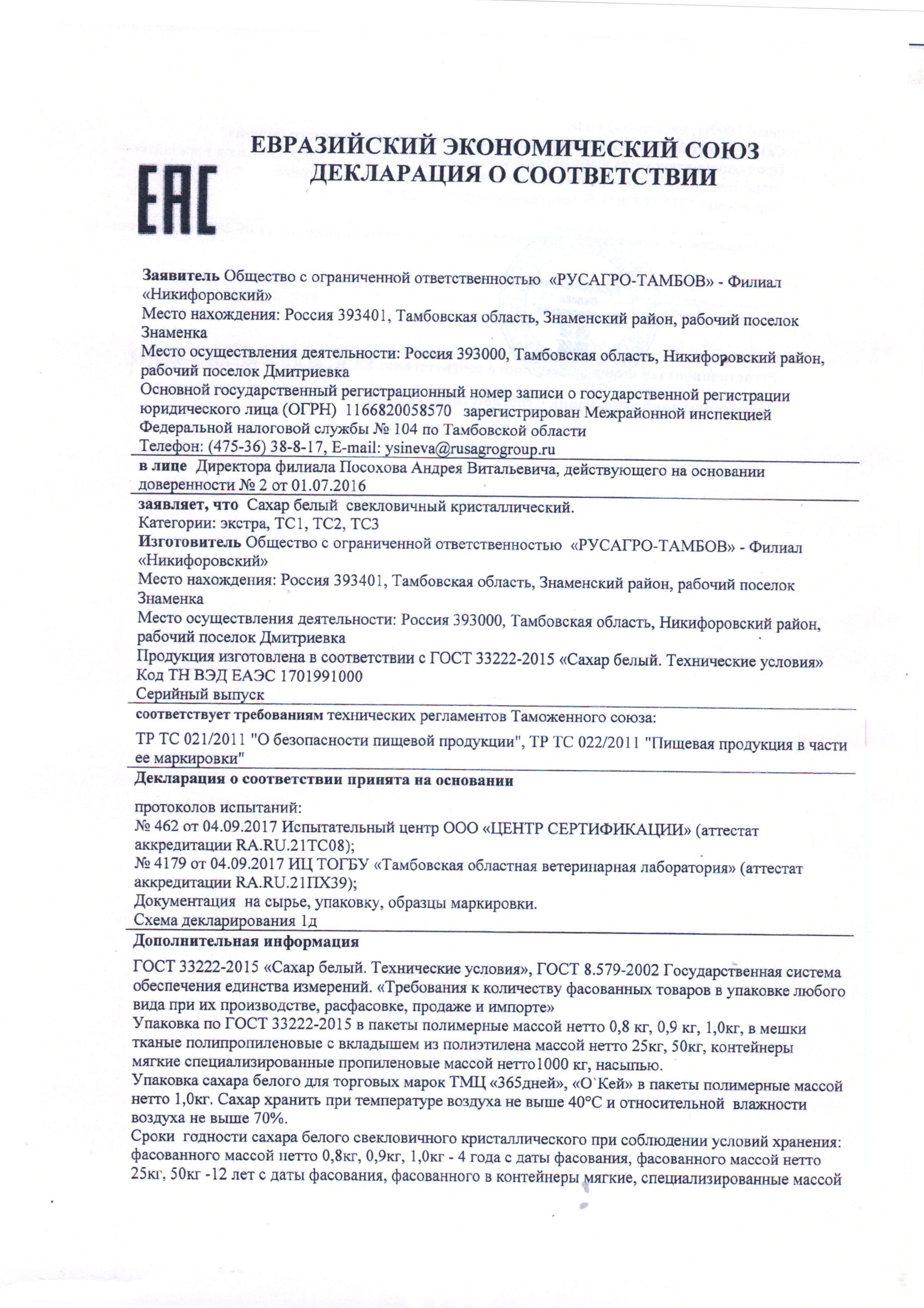 Производитель: ОАО Валуйкисахар филиал Сахарный завод Ника.