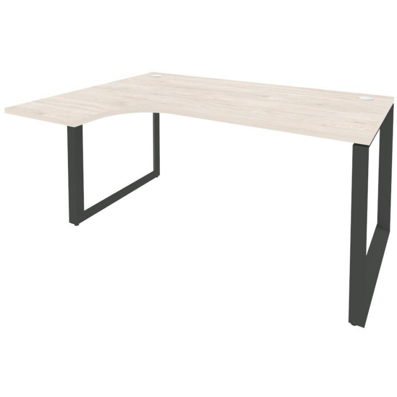 Внимание! Пожалуйста, проверяйте цвет изделия до начала сборки! Цвет на изображении товара в интернет-магазине или в печатном каталоге может отличаться от оригинала из-за особенностей цветопередачи. Эргономичный стол представляет собой сборную корпусную конструкцию из мебельных деталей, изготовленных из плиты древесностружечной, облицованной пленками на основе термореактивных полимеров, класс эмиссии формальдегида Е1 по ГОСТ Р 52078-2003 (ЛДСП) фирмы Кronospan. Толщина столешницы 25 мм. Кромкой ПВХ толщиной 2 мм облицованы видимые торцы деталей, невидимые торцы облицованы кромкой толщиной 0,4 мм. Столы имеют металлические заглушки кабель-канала. Металлический каркас из треугольного профиля сечением 70x20, толщиной металла 2 мм, окрашен порошковой краской. Цвет покрытия столешницы денвер светлый, цвет каркаса антрацит.