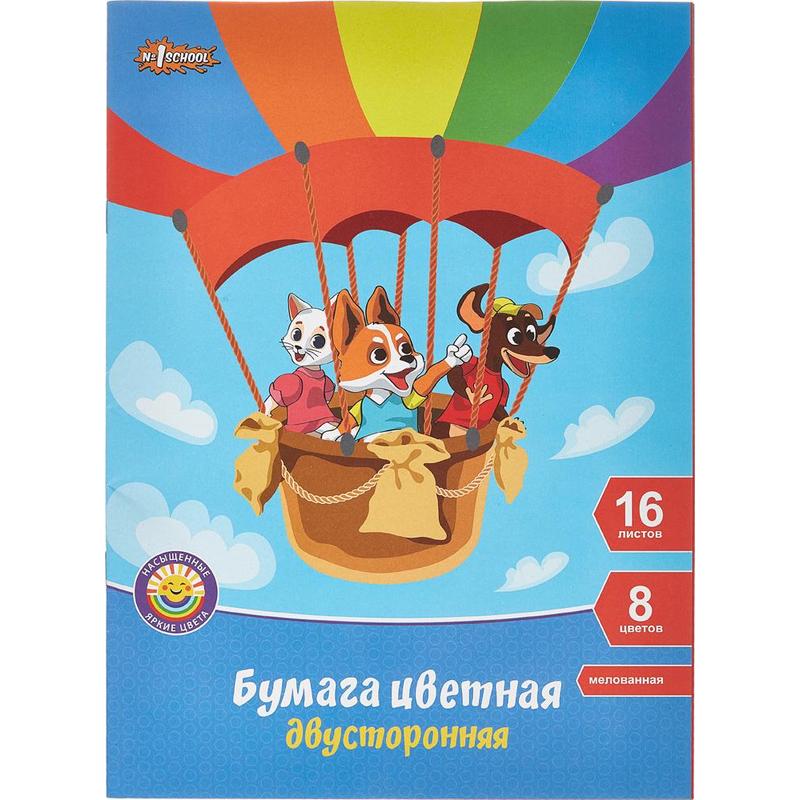Бумага цветная №1School Шустрики (А4, 16 листов, 8 цветов, мелованная, двусторонняя)