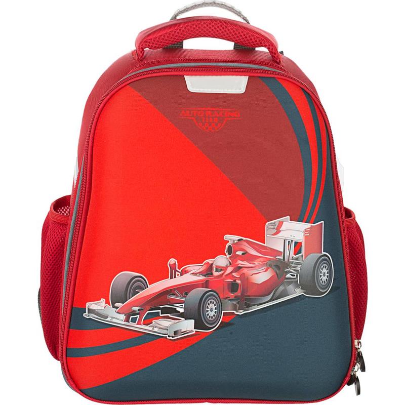Ранец для мальчиков анатомический. Прочная конструкция ранца надежно защищает его содержимое за счет плотного формованного материала. Жесткая спинка с мягкими анатомическими вставками с поддержкой в области поясницы. Широкие удобные лямки из воздухообменного сетчатого материала имеют систему регулировки по росту ребенка, что позволяет добиться наиболее комфортного расположения ранца на спине. Ранец оснащен двумя ручками: одна узкая, чтобы вешать на парту, вторая широкая и мягкая, чтобы удобно носить в руке. Плотное, устойчивое дно на ножках. Ранец имеет два основных отдела на молнии. В первом отделении - сетчатый карман. Во втором - гибкая перегородка, предназначенная для удобного хранения книг и тетрадей. Также на ранце по бокам расположены сетчатые карманы для мелких принадлежностей. Светоотражающие элементы на лицевой стороне, боковых частях ранца, а также на лямках. Размер: 280x145x360 мм.