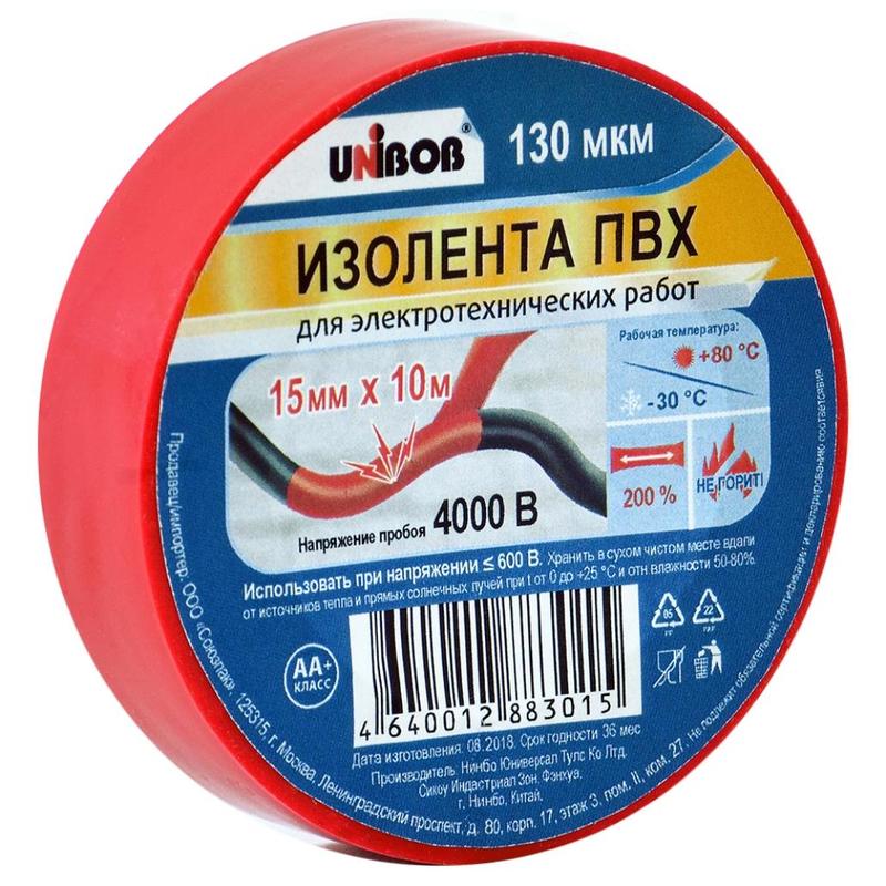 Изолента Unibob ПВХ красная 15 мм х 10 м красная