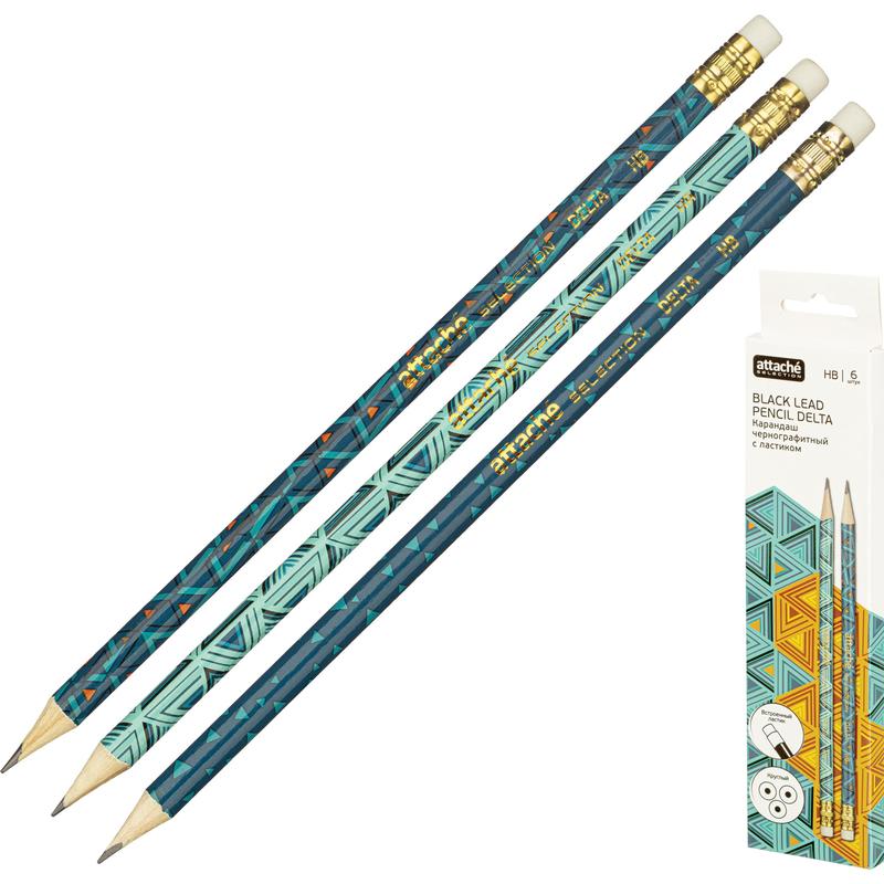 Карандаш чернографитный Attache Selection Delta заточенный с ластиком (6 штук в упаковке)