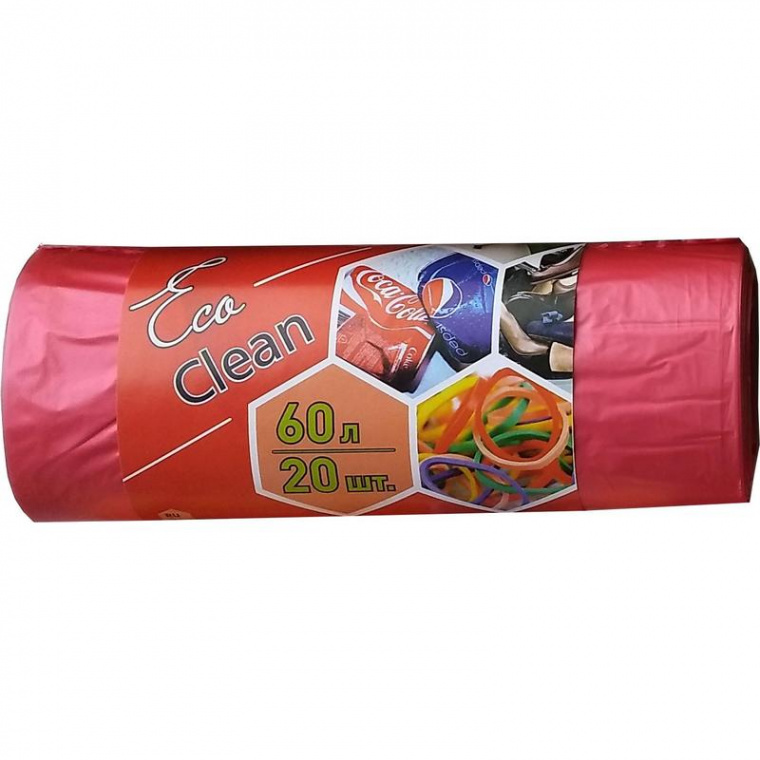 Мешки для мусора на 60 литров красные (10 мкм, в рулоне 20 штук, 58×68 см)
