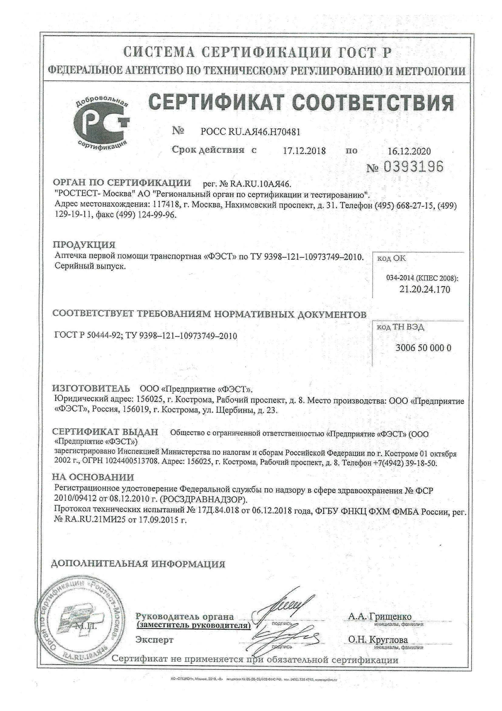 Аптечка изготовлена в соответствии с приказом Минздравмедпрома РФ от 20.08.1996 г. № 325 ( в редакции приказа Минздравсоцразвития России от 08.09.2009 года № 697н). Используется в том случае, если есть необходимость обеспечить комплексную первую медицинскую помощь при возможных травмах и различных недомоганиях. Аптечка упакована в футляр-чемоданчик из полистирола. № Содержание коллективной аптечки ФЭСТ Кол-во: