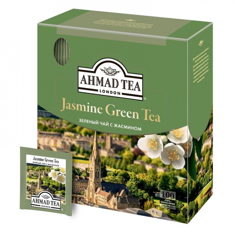 Чай Ahmad Green Jasmine Tea зеленый байховый 100 пакетиков — это прекрасная смесь китайского длиннолистового чая с цветами жасмина. Аромат жасмина нежно уравновешивает нотки зеленого чая, создавая утонченный напиток, способный освежить и отлично утолить жажду.