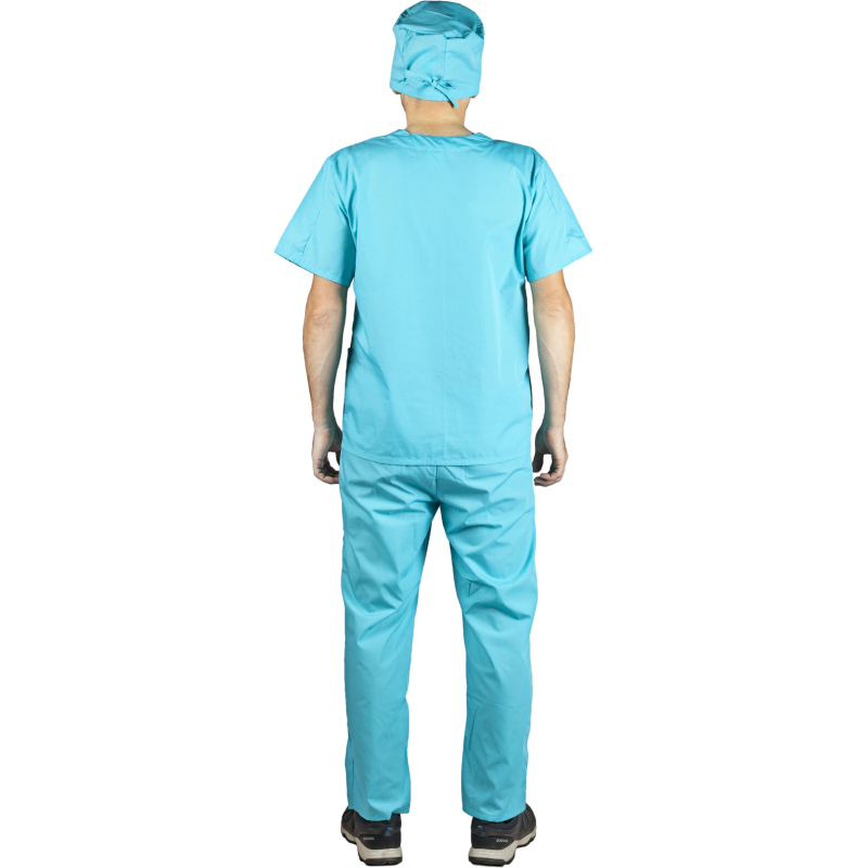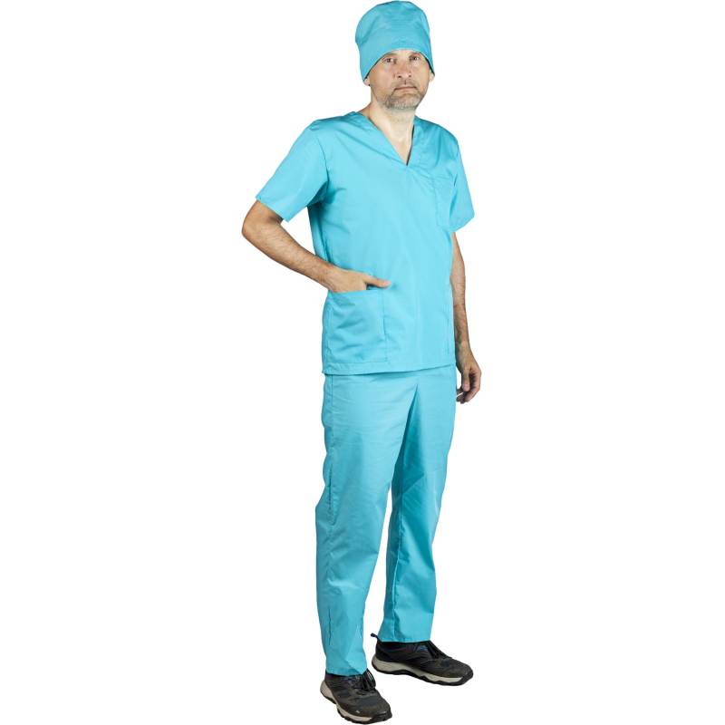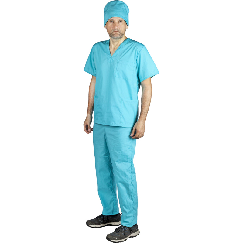 Костюм хирурга универсальный модели м05-КБР подойдет как для мужчин, так и для женщин. Выполнен в голубом цвете. Медицинский костюм состоит из куртки и брюк, а так же в состав входит колпак. Размер 48-50, рост 170-176. Изготовлен из смесовой ткани - 65% полиэфира и 35% хлопка. Плотность материала составляет 120 г/кв.м, благодаря чему обеспечивается легкость изделия. Ти-Си - материал, приятный на ощупь, гигиеничен и долговечен. Не мнется, легко и быстро стирается, быстро сохнет. Долго сохраняет свой первоначальный яркий цвет. Ткань дышит, благодаря входящему в состав хлопку, имеет повышенный срок службы и проста в уходе, благодаря полиэфиру. Куртка с коротким рукавом и нагрудным карманом, свободный покрой обеспечивает удобство в работе. Брюки прямые на резинке. На куртке три накладных кармана, один на груди, два по бокам. Униформа рекомендована для сферы красоты и здоровья: медицинские учреждения, центры. Предназначен для зашиты от общих производственных загрязнений. Соответствует стандартам ГОСТ 9897-88, ГОСТ 9896-88.