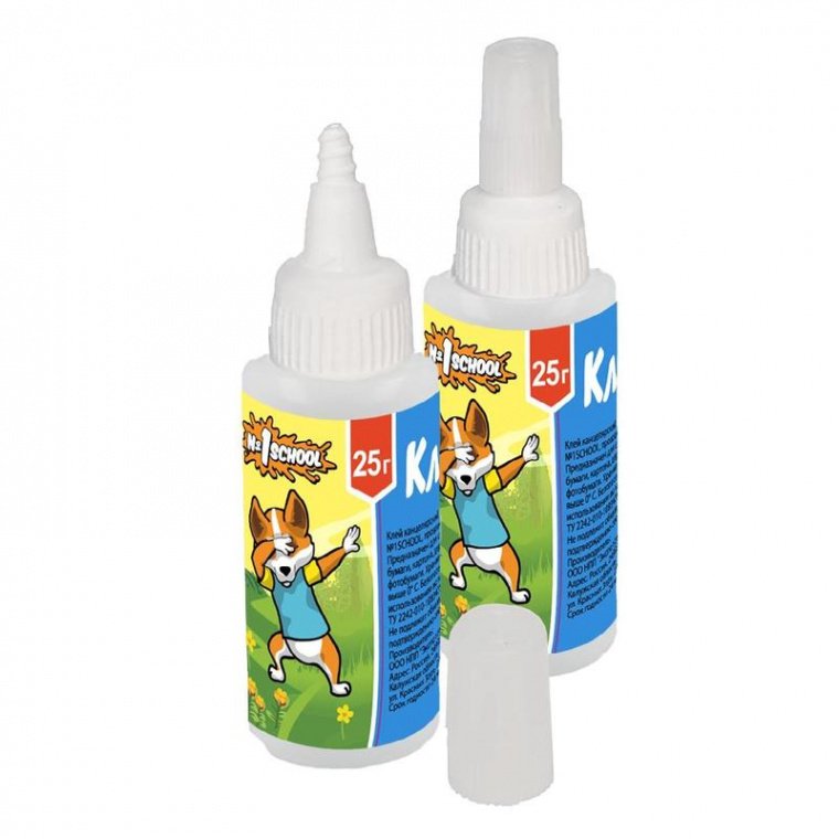 Синтетический канцелярский клей № 1 School — морозостойкий, прозрачный, абсолютно безопасный клей высокого качества, предназначенный для офисных канцелярских работ по бумаге и картону, а также для приклеивания фотографий. Клей безопасен для детей, не имеет запаха, не токсичен, экологически безопасен, не содержит растворителей. Удобный флакон оснащен крышкой-дозатором со съемным колпачком, защищающим от пересыхания при хранении. Вес: 25 г (объем: 25 мл). Клей имеет консистенцию — гель.