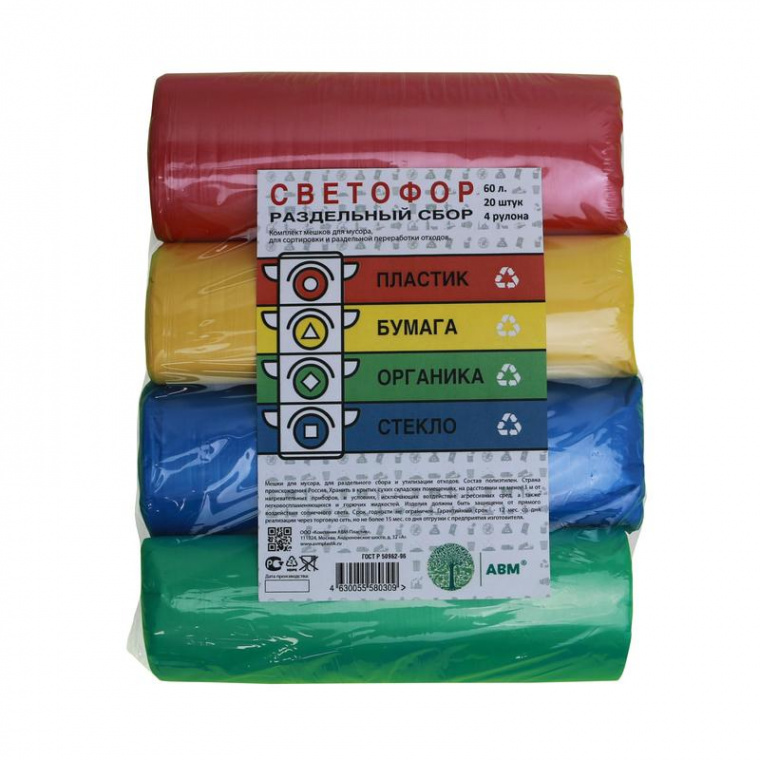 Комплект мешков раздельного сбора мусора — предназначен для последующей его переработки и утилизации, с целью минимизации вреда, наносимого окружающей среде. Мешки удобны в обращении, они прочные герметичные и универсальные в использовании. Различный цвета предназначены для разных типов мусора.