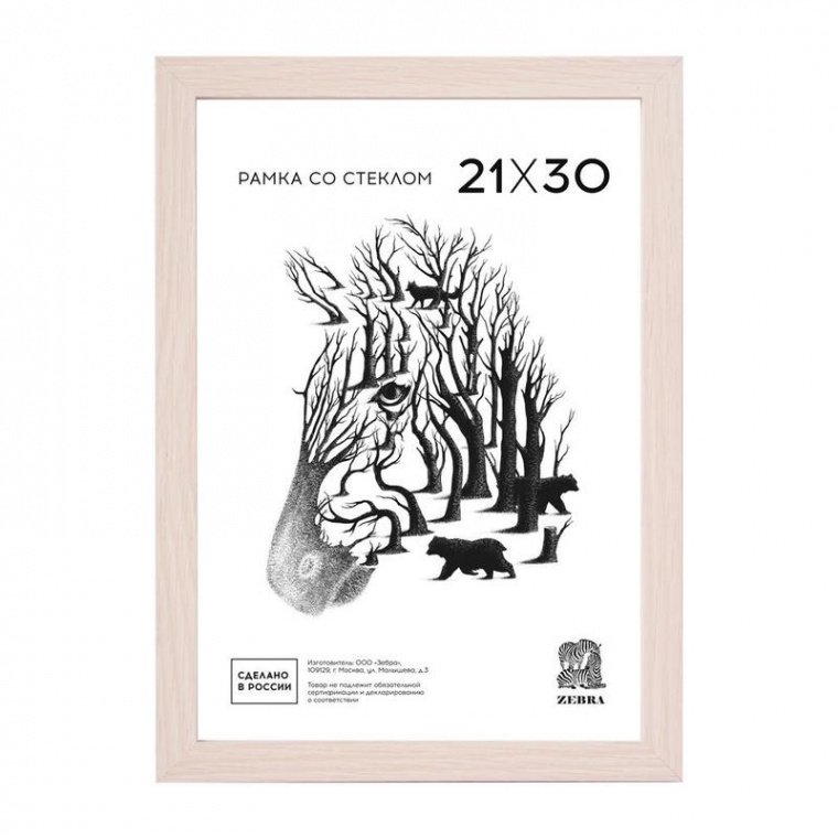 Рамка Зебра A4 21x30 см МДФ багет 18 мм натуральное дерево