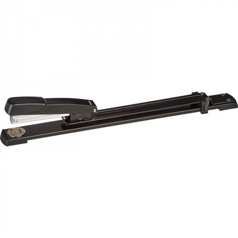 Степлер-брошюровщик Attache предназначен для скрепления крупноформатных документов. Металлический механизм позволяет сшивать открытым и закрытым способами документы толщиной до 25 листов, добавлять документы к готовым брошюрам и регулировать глубину закладки бумаги до 335 мм. Регулятор расстояния сшивания имеет двойную градацию шкалы (сантиметр, дюйм). Корпус выполнен из металла черного цвета. Рукоятка степлера имеет эргономичную пластиковую насадку. Степлер использует металлические скобы размеров № 24/6, 26/6. Вместимость скоб № 24/6 — 150 штук, 26/6 — 200 штук. Размер изделия 410×70×42 мм.