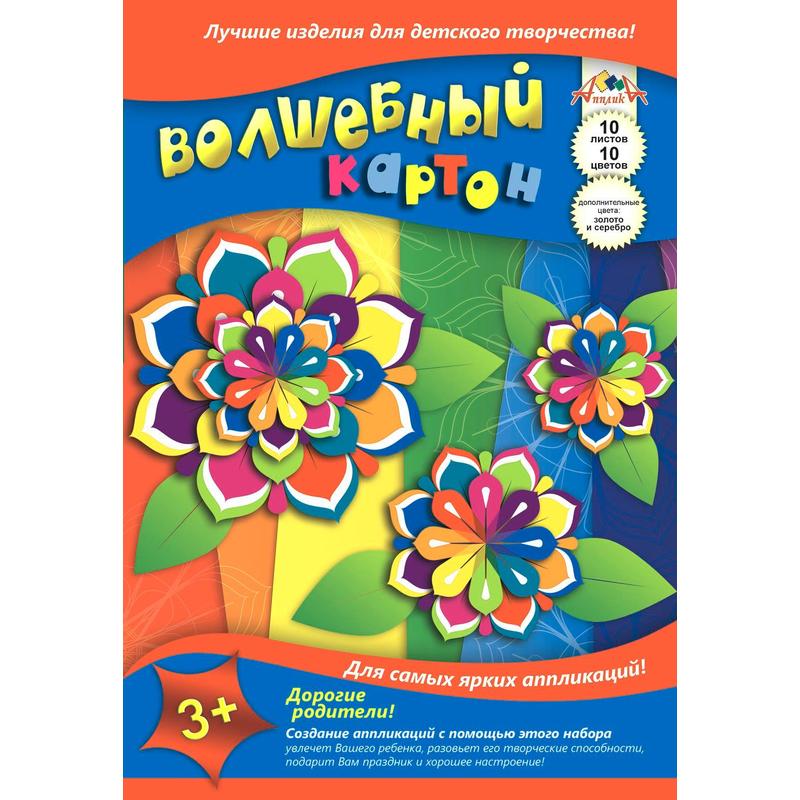 Картон цветной Апплика (А4, 10 листов, 10 цветов, немелованный)