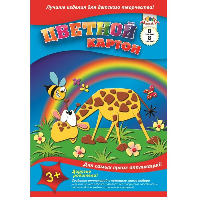 Картон цветной Апплика (А4, 8 листов, 8 цветов, немелованный)