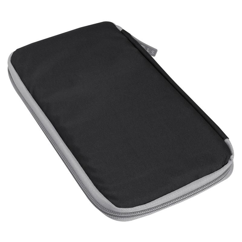 Этот аксессуар пригодится как опытному туристу, так и каждому, кто любит организовывать хранения важных документов и полезных мелочей. Органайзер для путешествий изготовлен из качественного полиэстера. Внутри — пять отделений для банковских карт, два отделения для мелочей, три отделения для документов, билетов и посадочных талонов, а также петля для ручки или карандаша.