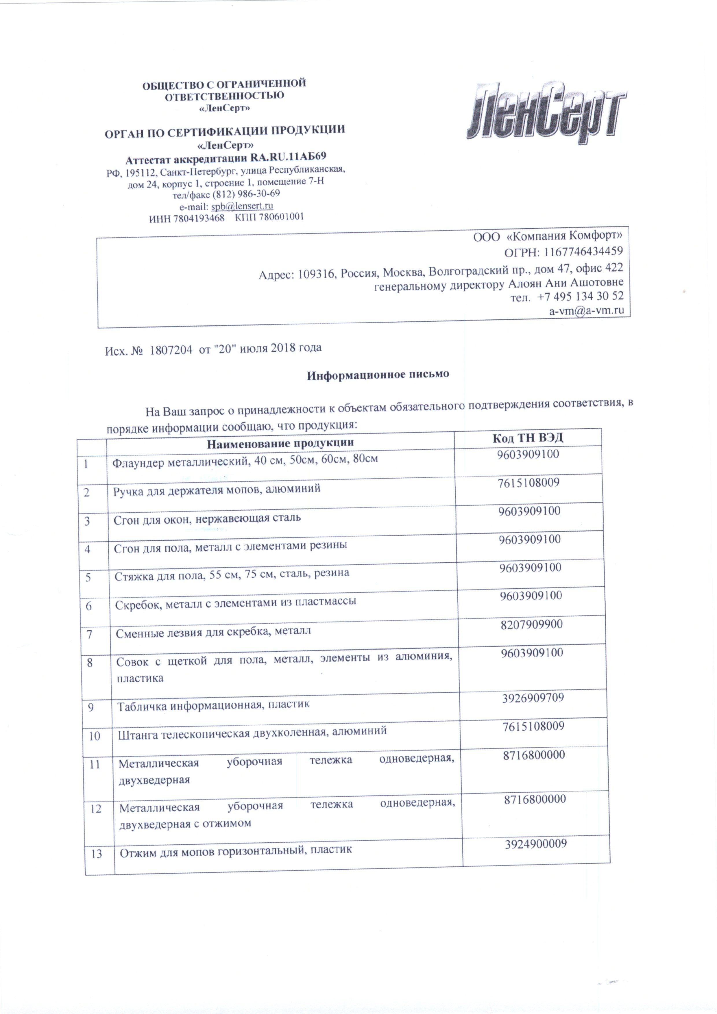 Сертификат на товар - Насадка МОП веревочная A-VM Алабама хлопок 30 см зеленая