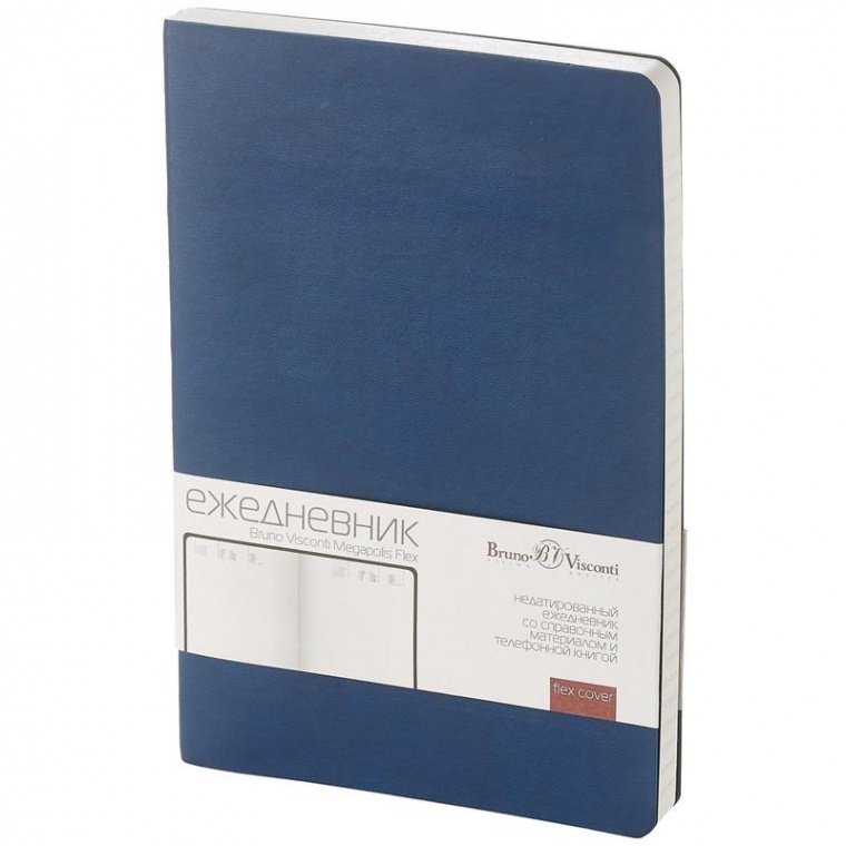 Элегантная закругленная flex обложка из гладкого кожзама имеет гибкую конструкцию. Интегральный переплет позволяет сэкономить место с рабочей сумке или портфеле — ежедневник можно просто свернуть в трубку или согнуть пополам.Недатированный ежедневник формата А5 (14×21 см) содержит 272 страницы. Для ниx используется качественный бежевый офсет повышенной плотности (70 г/кв м). Блок не привязан к конкретным датам — они указываются в выделенном поле вверxу страницы. Тонированная бумага не дает глазам утомиться даже при длительной работе. Ежедневник также содержит справочную информацию и телефонную книгу. Предлагаем услуги по нанесению логотипа на обложку.