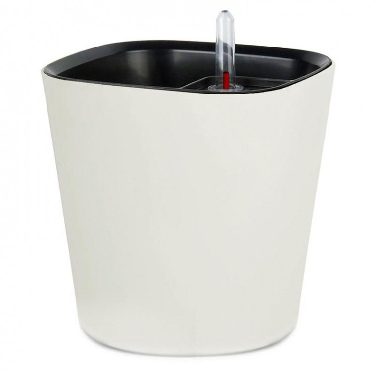 Горшок состоит из трех частей — внешнее кашпо, внутренняя часть и индикатор воды. Такая конструкция позволяет поливать растение 1 раз в 2-3 недели, что не приведет к переливу растения. Размер изделия: 17×16 см. Объем: 3 л.