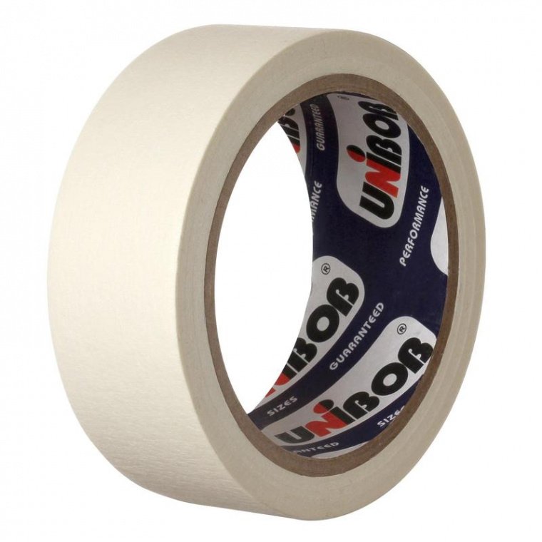 Клейкая лента малярная Unibob белого цвета, ширина 48 мм, длина 25 метров. Применяется для локальной защиты поверхности при проведении малярных, штукатурных и строительных работ. Обеспечивает четкие границы при окрашивании. Основа клейкой ленты — крепированная бумага с влагостойкой пропиткой. Клеевой слой — каучук. Рабочая температура: от 10 до 60 градусов.