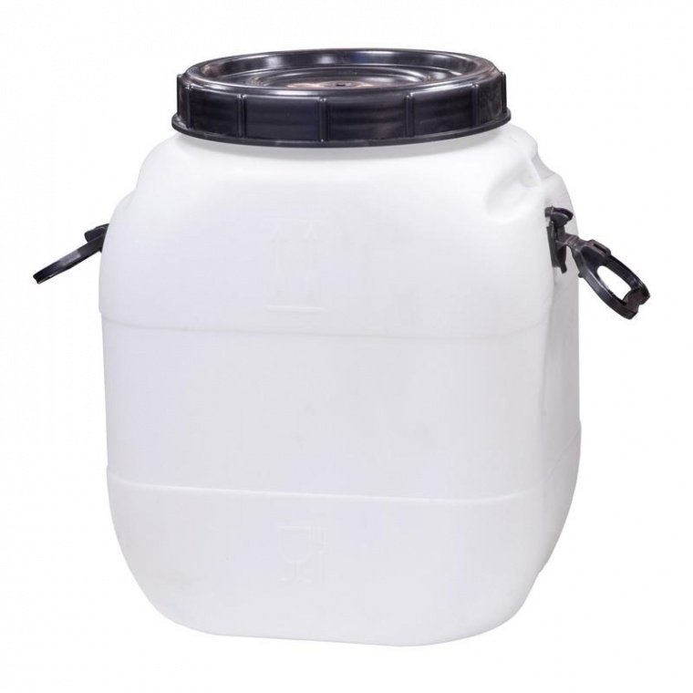Бочка-бидон из пластика белого цвета используется для твёрдых, жидких, вязких или сыпучих холодных продуктов, идеальна для квашений и солений.