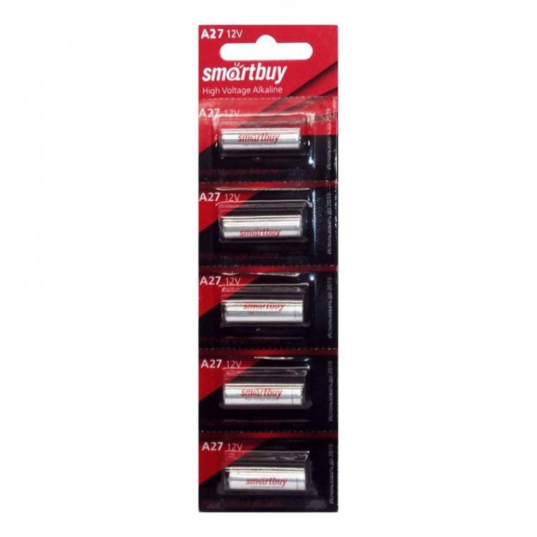 Щелочные батарейки SmartBuy A27 12В используются в цифровых фотоаппаратах, фотовспышках, фонариках, брелках автосигнализаций, бесконтактных ключах, беспроводных звонках, игрушках и в других устройствах. В упаковке 5 штук. Лучший способ утилизировать отработавшие батарейки — приносить их в контейнеры для дальнейшей переработки. Такие контейнеры сейчас устанавливаются во многих супермаркетах, торговых центрах и магазинах бытовой техники. Утилизация батареек должна происходить согласно санитарным нормам, то есть в специализированный контейнер.