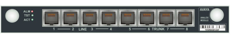 Аналоговый медиа-модуль с 4-мя линейными аналоговыми портами для подключения телефонов и 4-мя внешними аналоговыми линиями.